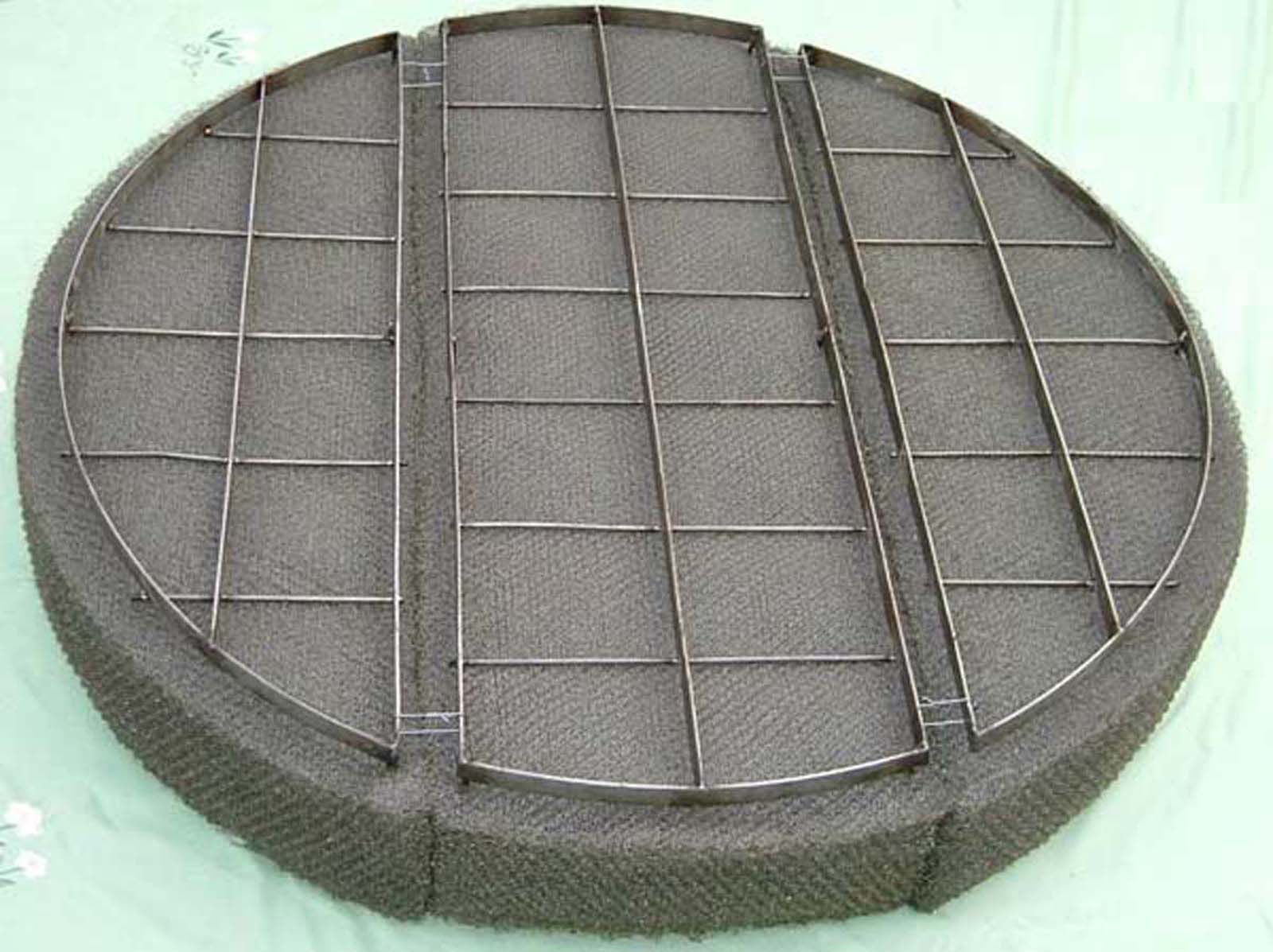 二、 把絲網除沫器網塊按分布的順序放在托梁上面擠緊。